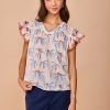 Una blusa luminosa y femenina, ideal para los días de calor, perfecta para combinar con pantalones fluidos, denim o faldas, y pensada para quienes valoran los detalles bordados y las prendas con personalidad propia.