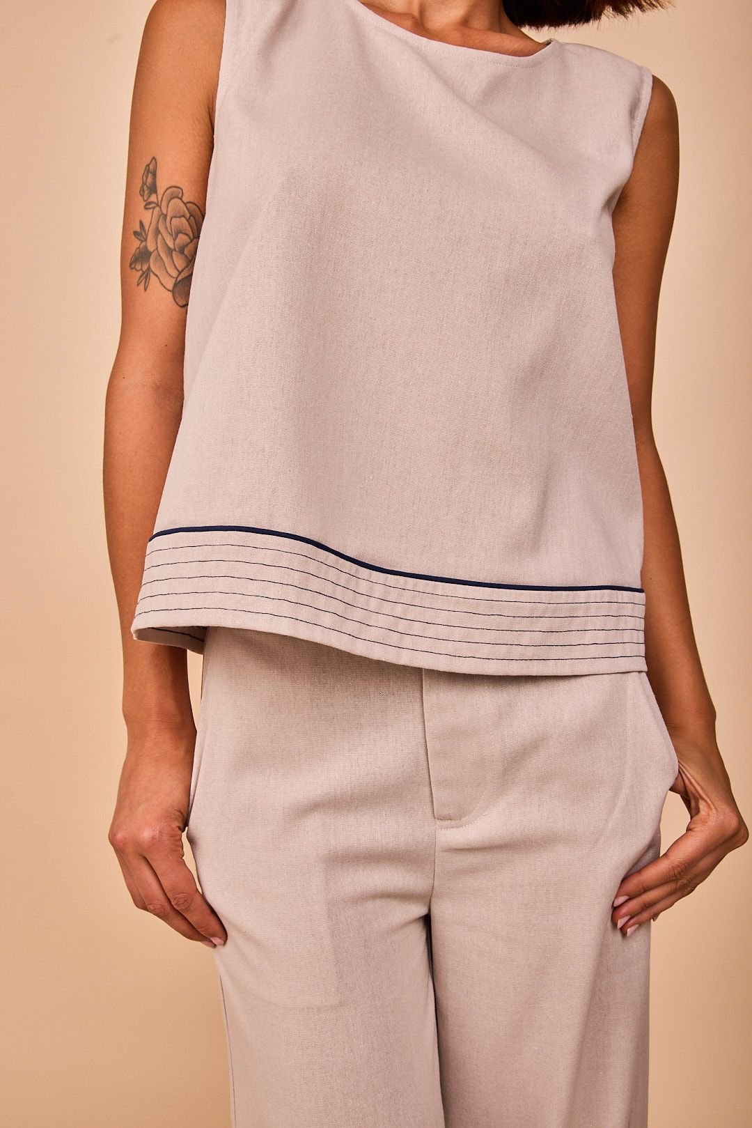 Descubre la Blusa sin mangas tostada en Glüsshop, tienda de ropa online y tienda física situada en la ciudad de Murcia, especializada en moda original, colorida y diferente para mujer.
