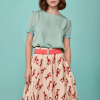 Puedes llevarla con faldas estampadas, pantalones fluidos, vaqueros o shorts, adaptándose fácilmente a looks casuales, relajados o más sofisticados según la ocasión.