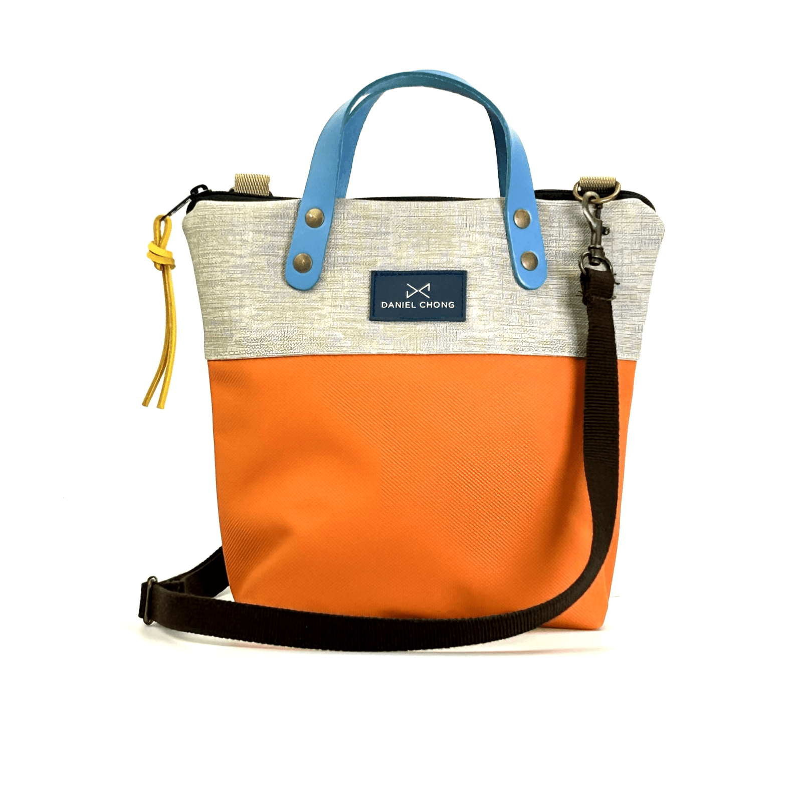 Bolso bandolera impermeable con asas de piel, correa regulable de algodón de alta densidad y herrajes de latón.