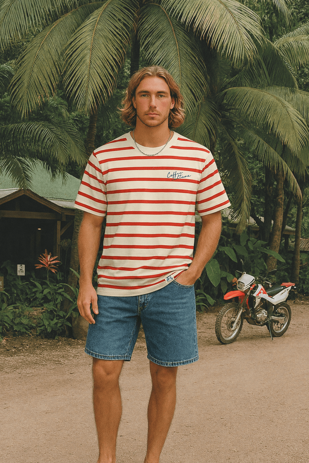 Descubre la Camiseta rayas rojas coffe culture hombre en Glüsshop, tienda de ropa online y tienda física situada en la ciudad de Murcia, especializada en moda original, colorida y diferente para hombre