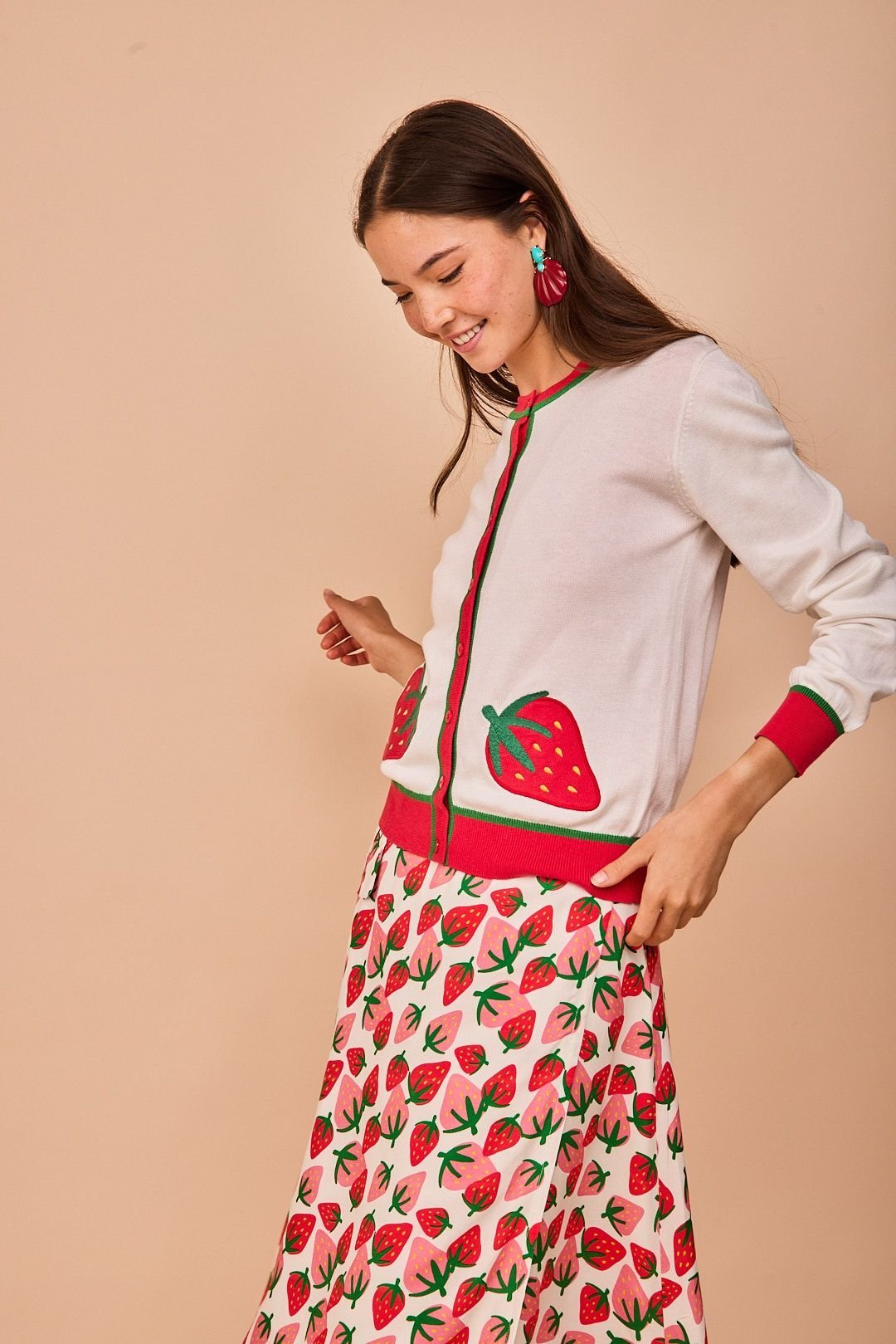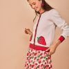 Chaqueta de punto fino con un diseño alegre y lleno de encanto, protagonizado por divertidos detalles de fresas que aportan un aire naïf y muy especial. Confeccionada en un tejido suave y agradable al tacto, es ideal para acompañar los looks de entretiempo o para dar un toque de color a conjuntos más sencillos.