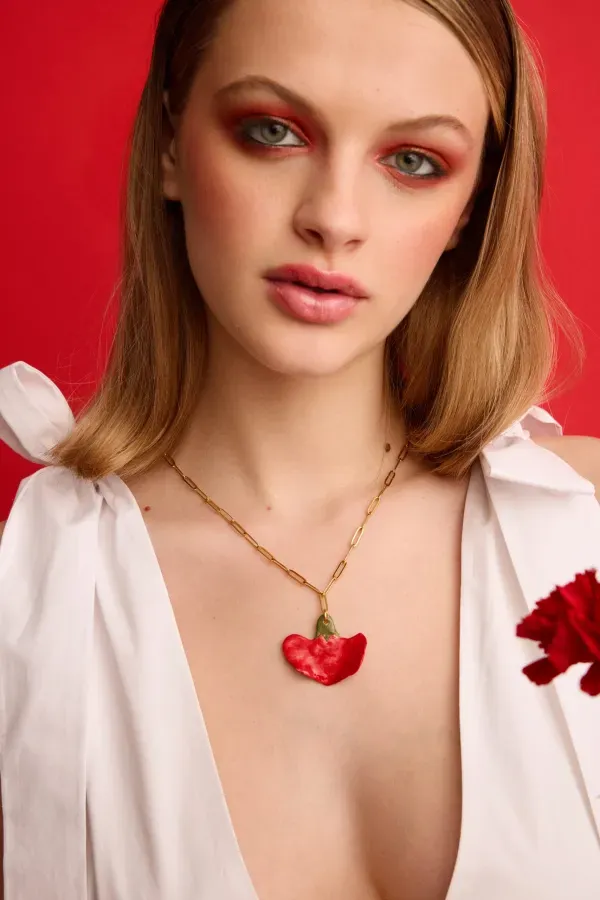 ¡No te lo pienses más!Collar clavel es la pieza perfecta para añadir color y alegría a tu armario.