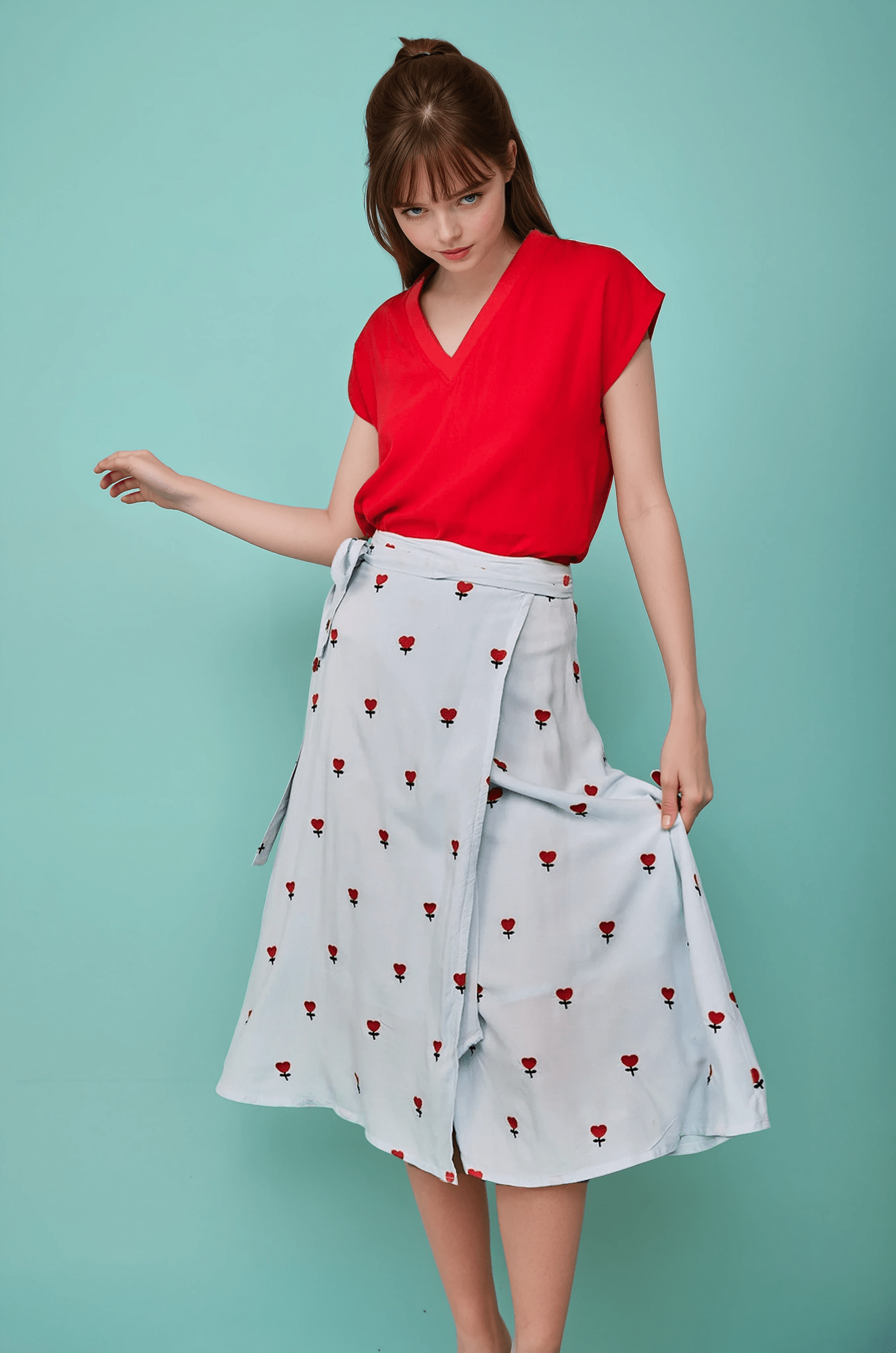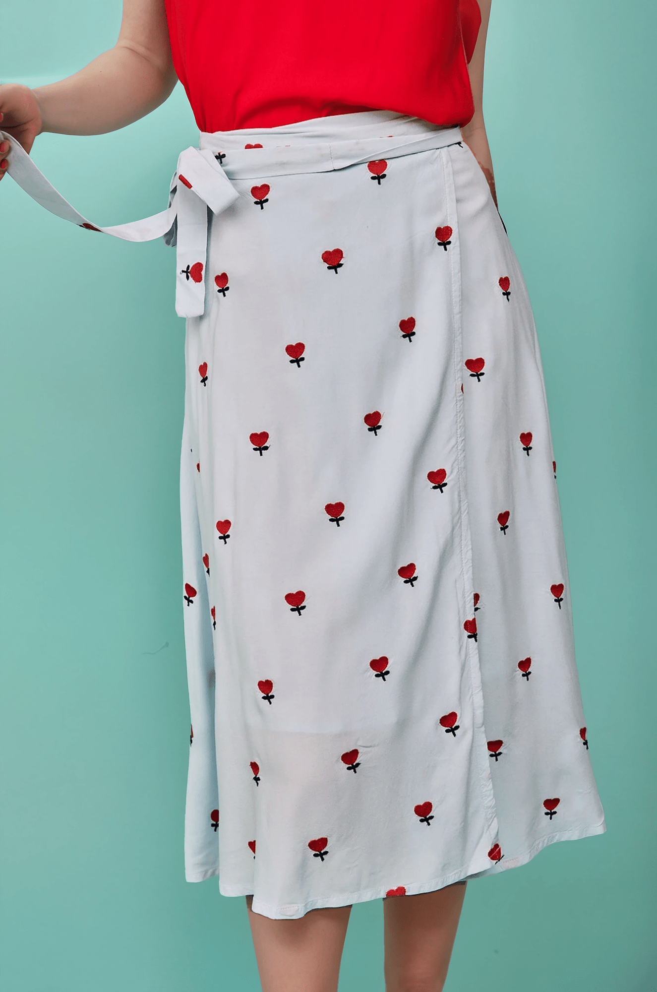 Descubre la Falda midi bordada corazones en Glüsshop, tienda de ropa online y tienda física situada en la ciudad de Murcia, especializada en moda original, colorida y diferente para mujer.