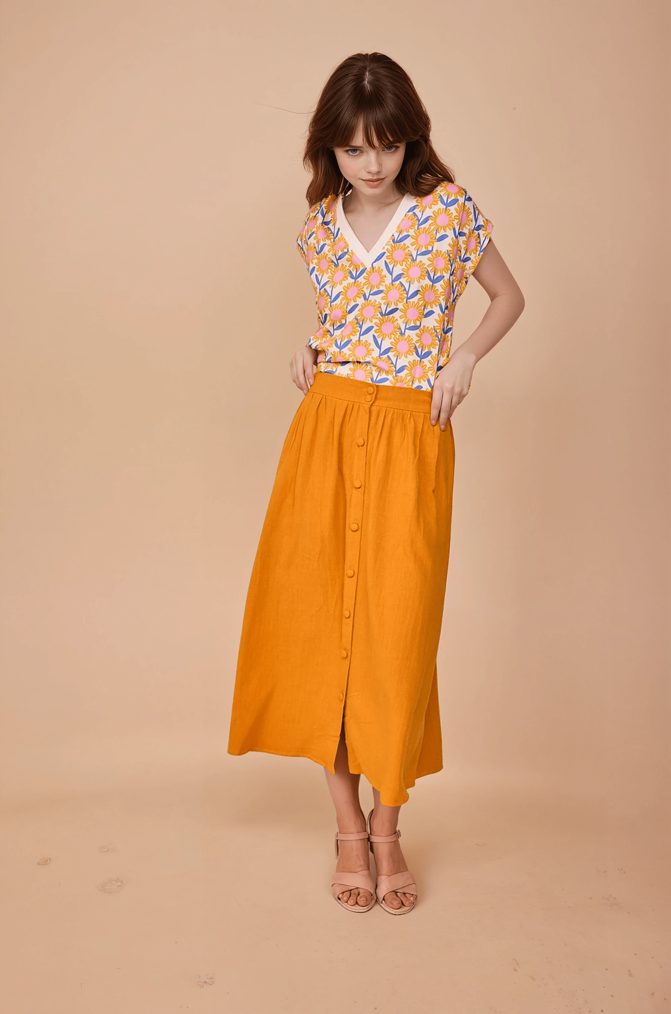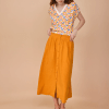 Descubre la Falda midi mostaza en Glüsshop, tienda de ropa online y tienda física situada en la ciudad de Murcia, especializada en moda original, colorida y diferente para mujer.