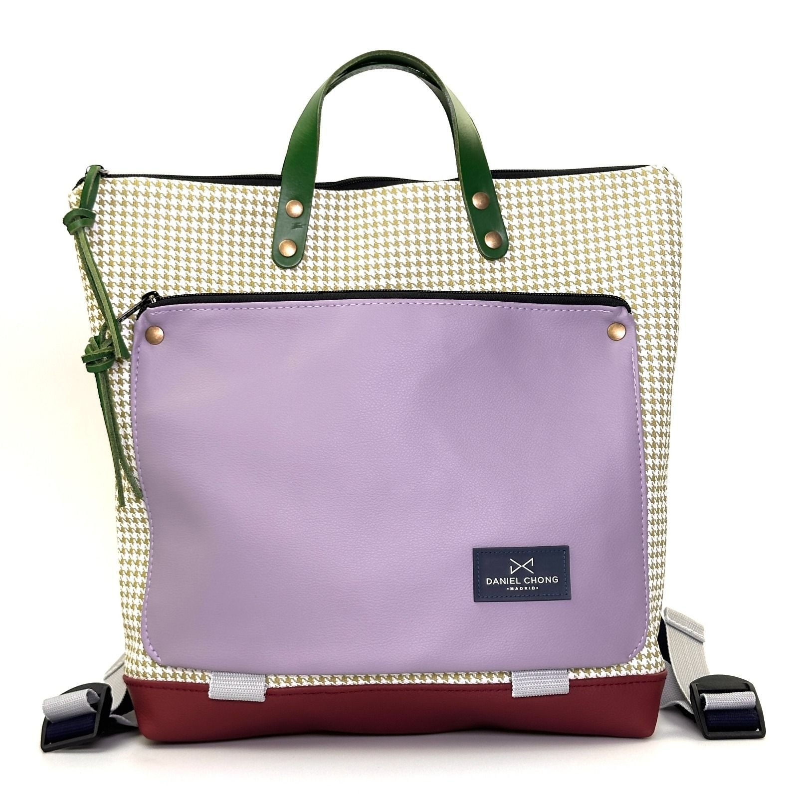 ¡No te lo pienses más! Nuestra Mochila cuadrada lila y granate es la pieza perfecta para añadir color y alegría a tu armario.