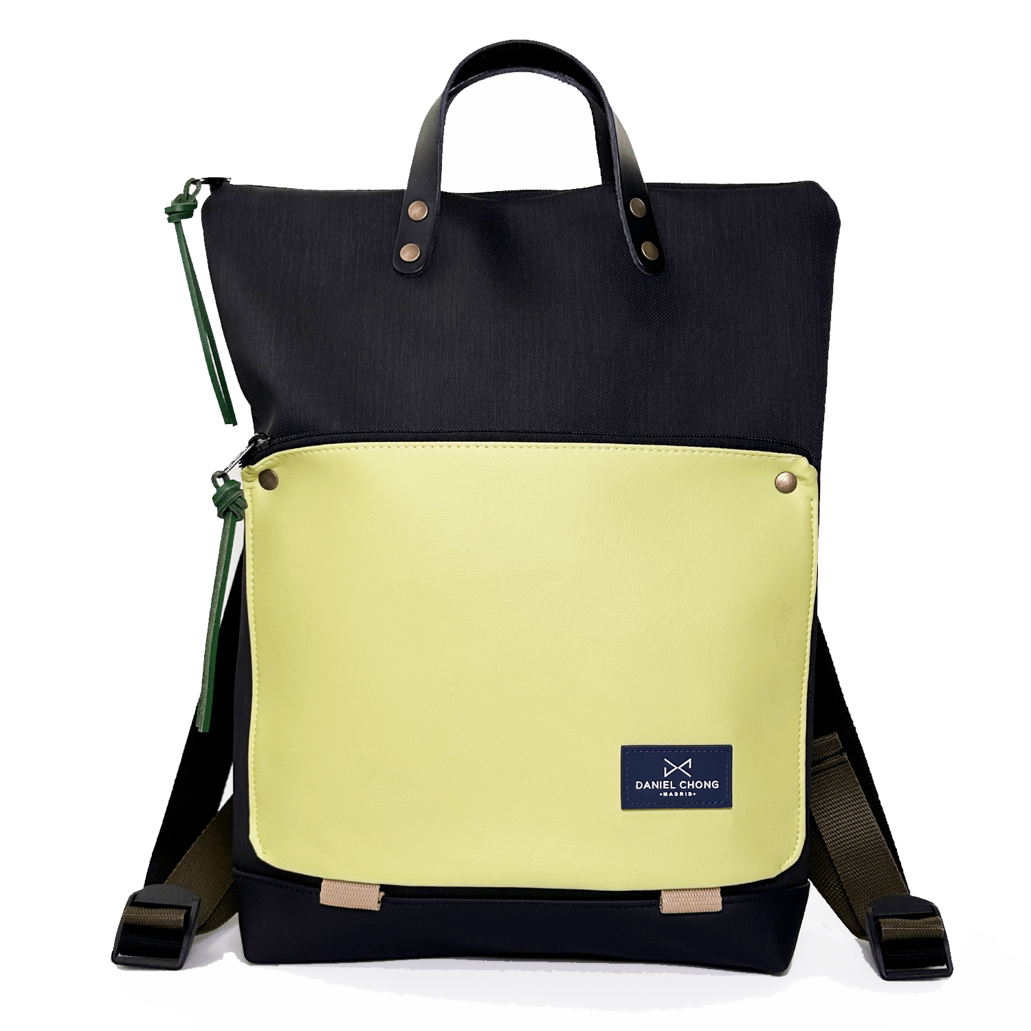 Con un toque retro, inspirado en las ultimas corrientes, esta Mochila rectangular lila y amarillo es única y exclusiva, ya que trabajamos con pocas unidades de cada modelo.