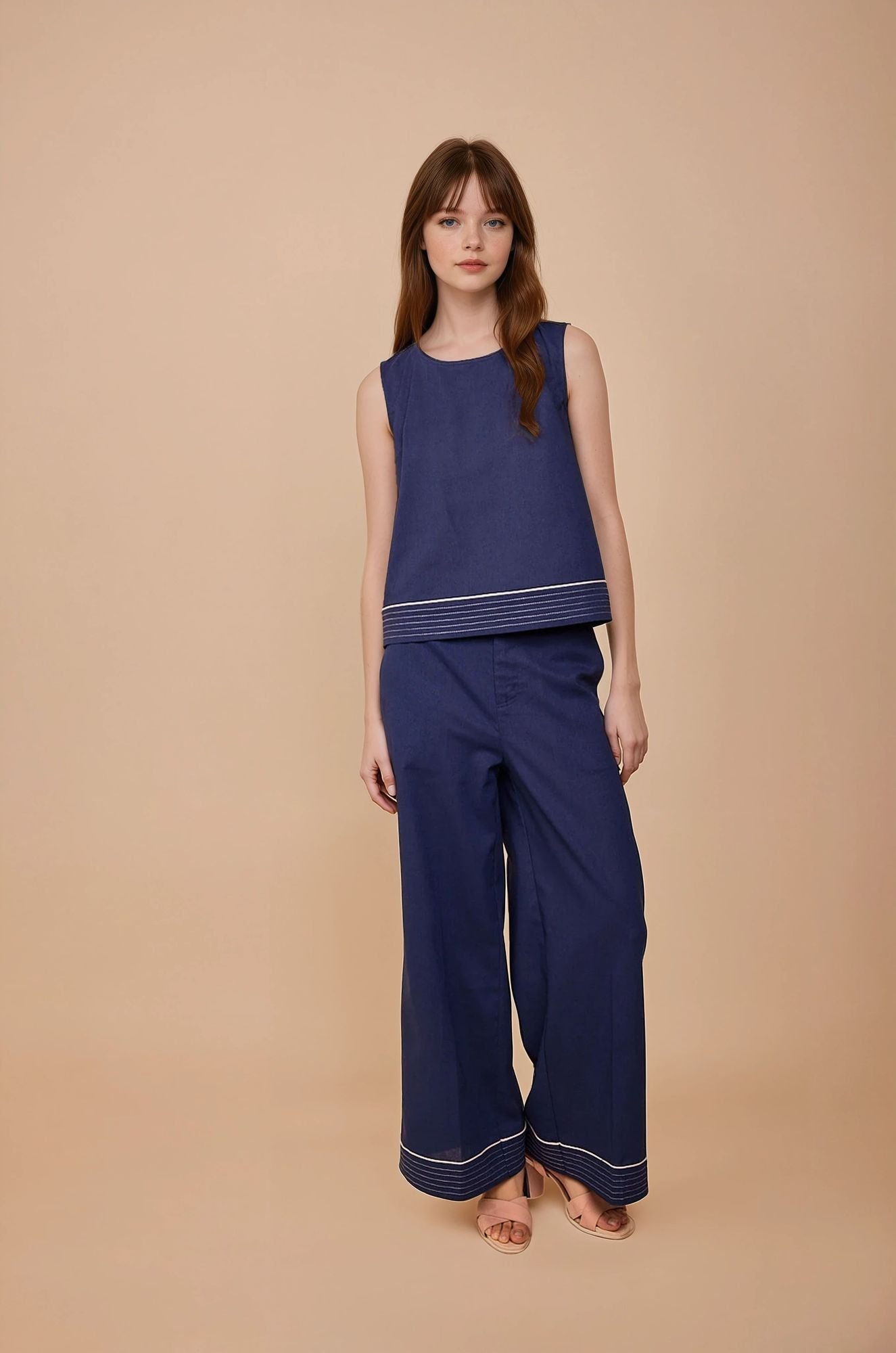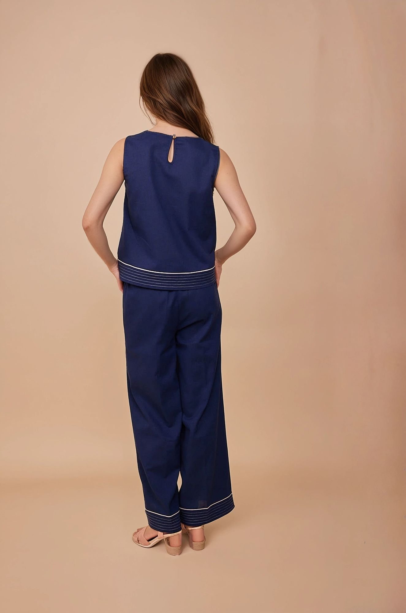 Descubre el Pantalón fluido azul marino en Glüsshop, tienda de ropa online y tienda física situada en la ciudad de Murcia, especializada en moda original, colorida y diferente para mujer.