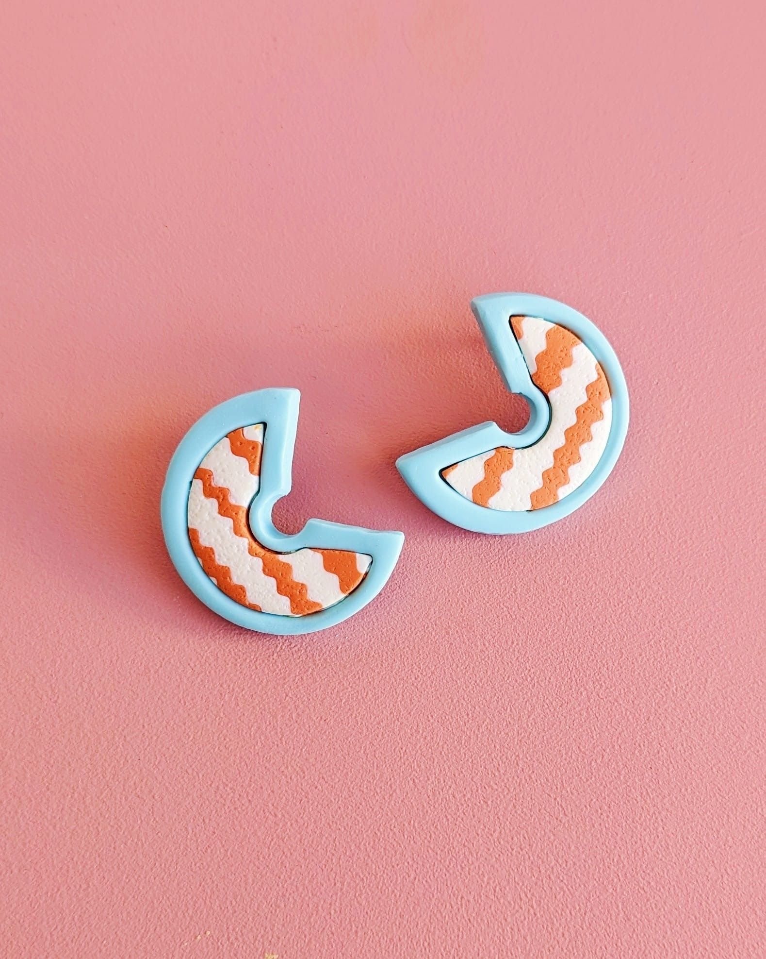 Pendientes geométricos Ziggi azul están hechos en arcilla polimérica, un material muy ligero y fácil de llevar, siendo perfectos para llevar durante horas.