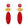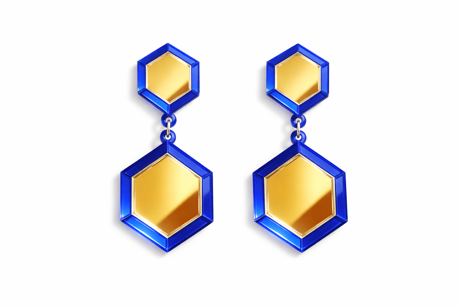 Midi pendientes de metacrilato espejo oro y espejo azul klein.