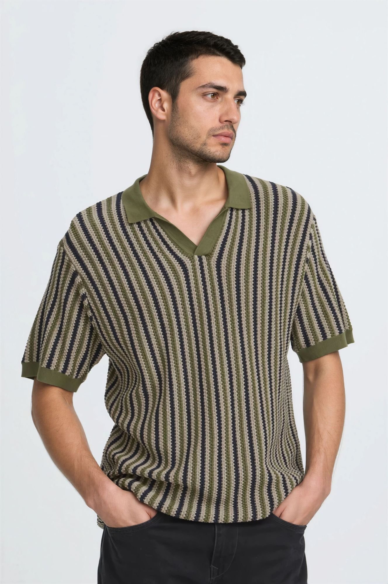 Descubre el Polo de punto rayas hombre en Glüsshop, tienda de ropa online y tienda física situada en la ciudad de Murcia, especializada en moda original, colorida y diferente para