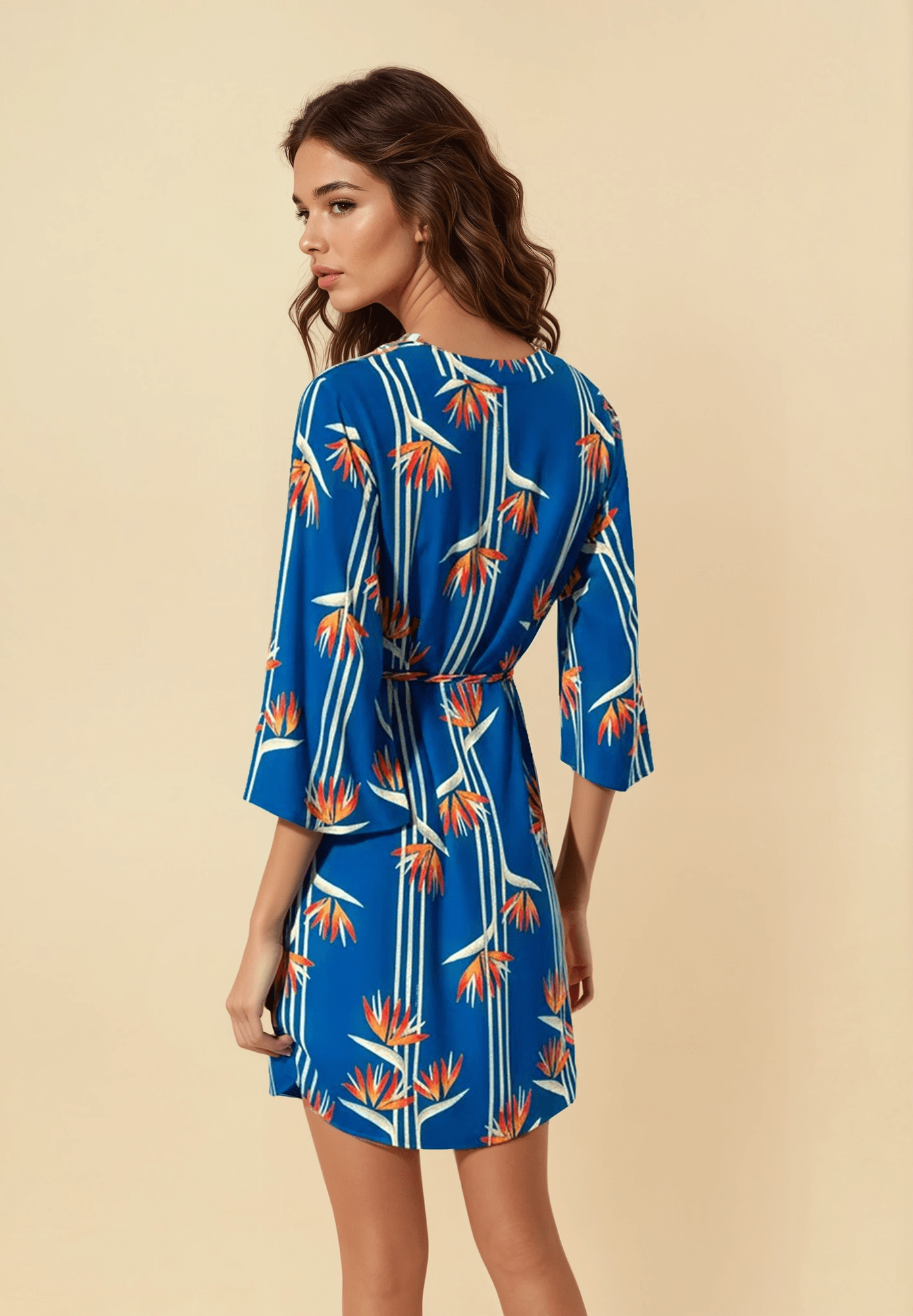 Descubre el Vestido corto azulón floral en Glüsshop, tienda de ropa online y tienda física situada en la ciudad de Murcia, especializada en moda original, colorida y diferente para mujer.