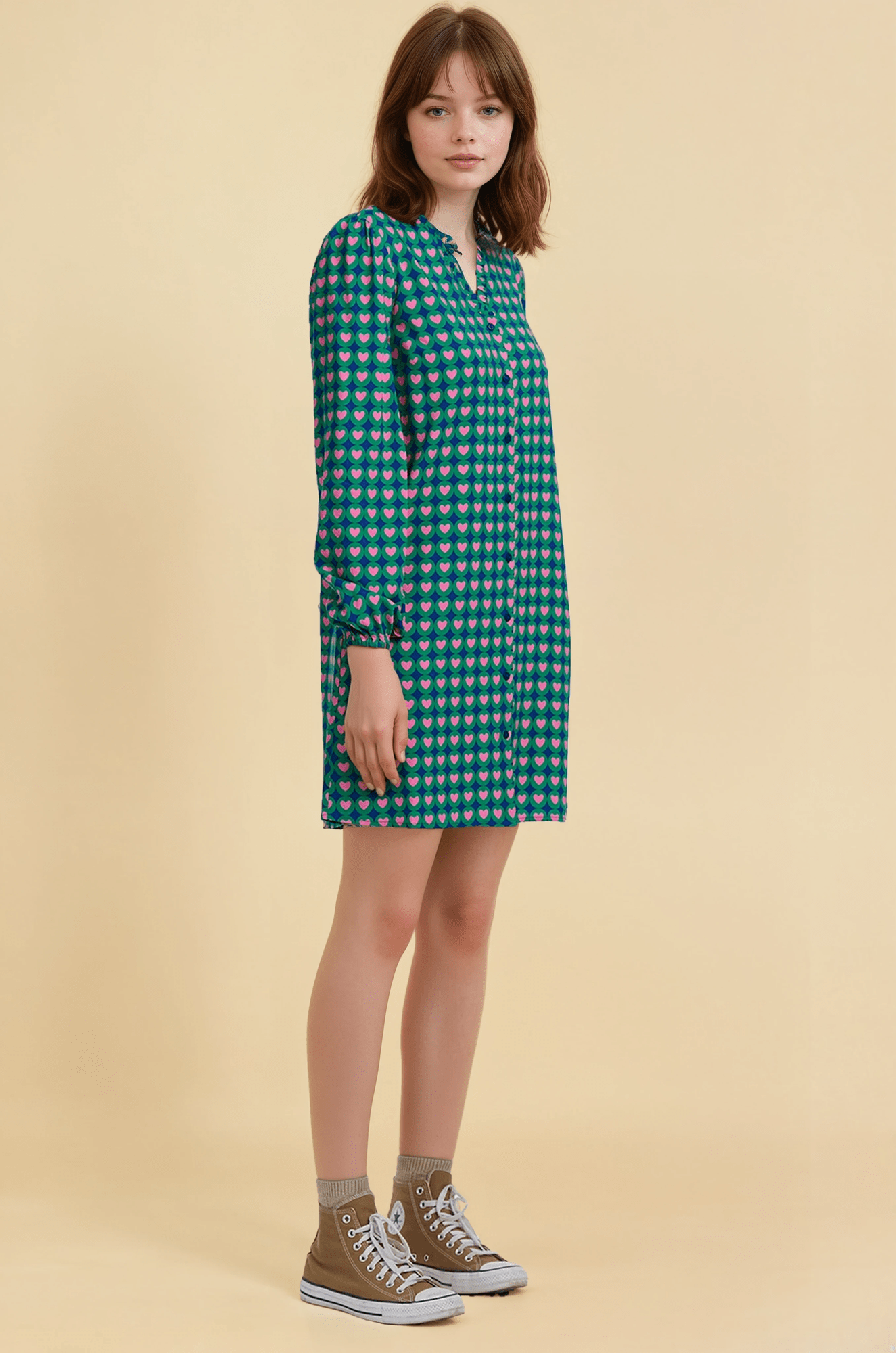 Descubre el Vestido corto estampado de corazones en Glüsshoptienda de ropa online y tienda física situada en la ciudad de Murcia, especializada en moda original, colorida y diferente para mujer.