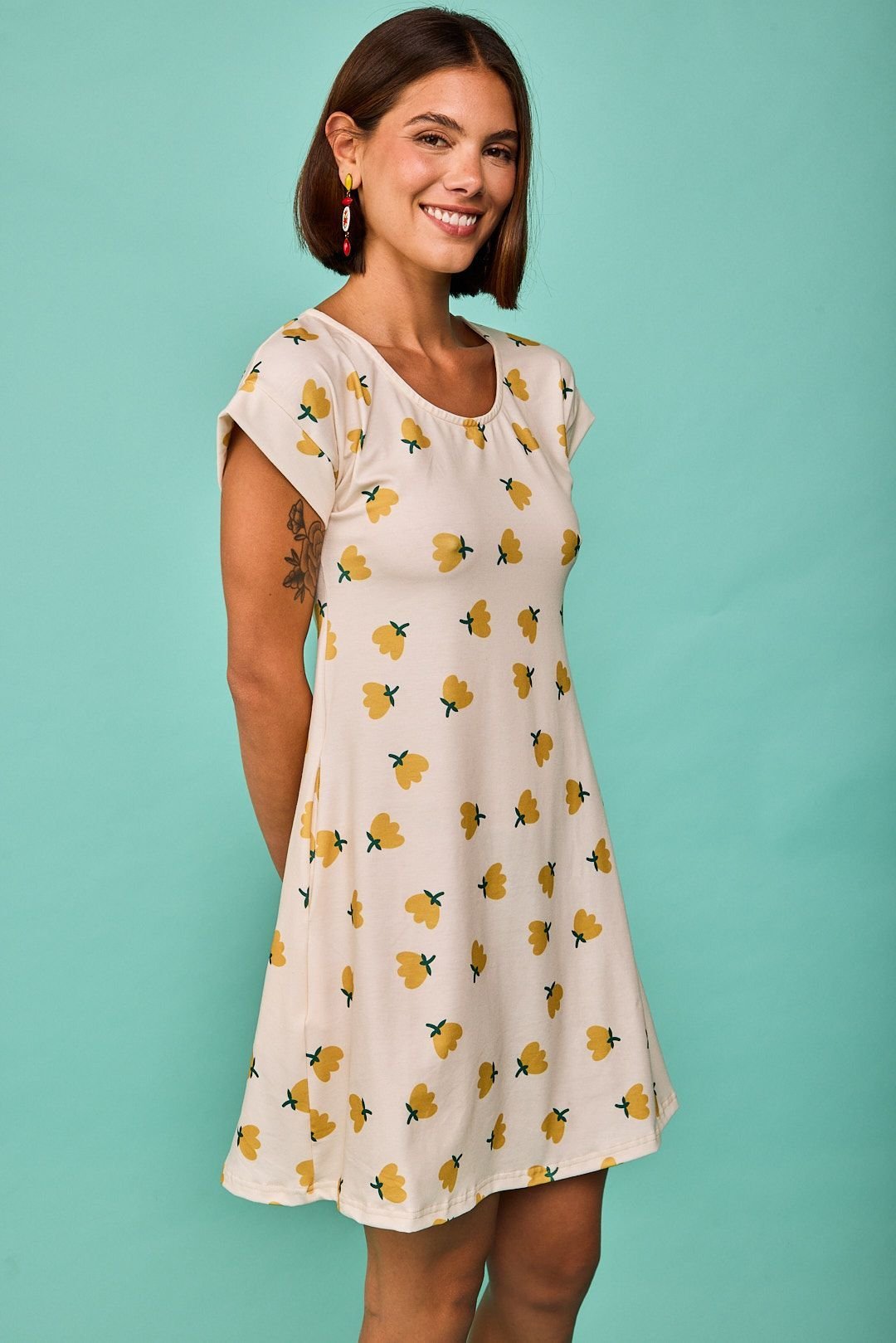 Descubre el Vestido corto flores amarillas en Glüsshoptienda de ropa online y tienda física situada en la ciudad de Murcia, especializada en moda original, colorida y diferente para mujer.